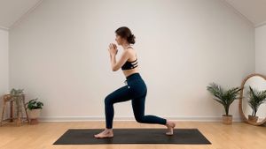 Übungen in diesem Workout sind u.a. Katze und Kuh, balancierender Vierfüßlerstand, (unterstütze) seitliche Planke, herabschauender Hund, Planke, Bicycle Crunch und ein Spinal Twist zum Entspannen.