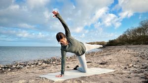 Sanfte Yoga-Dehnungen im Bett oder auf der Matte, die beim Einschlafen und Entspannen helfen. Mit beruhigender Musik und ohne Reden.